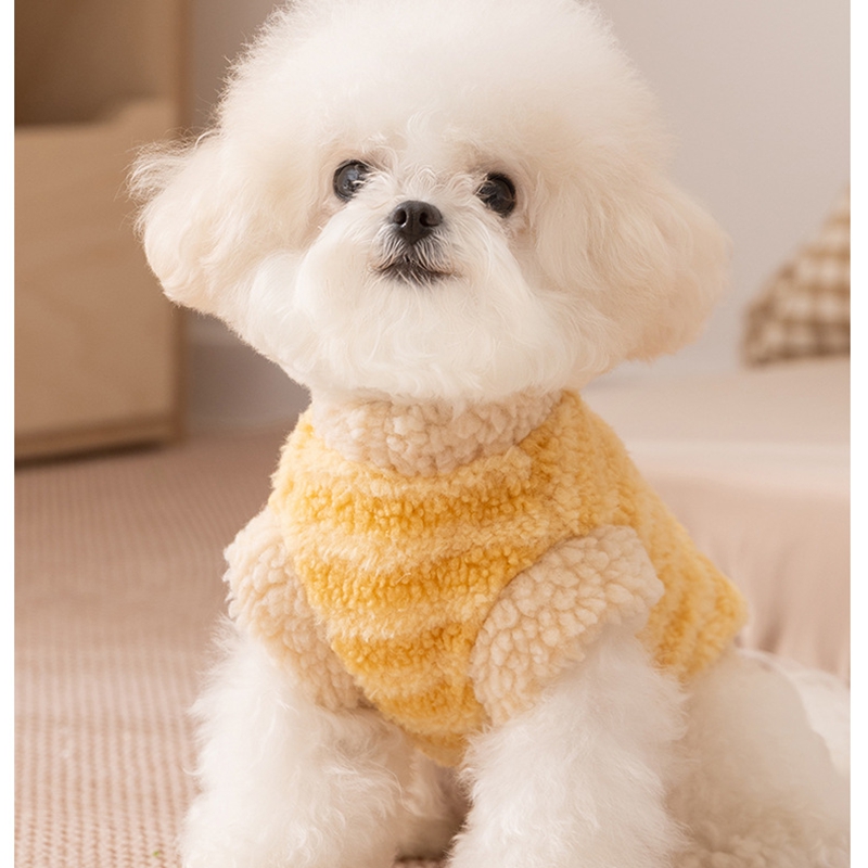 Keep your pet snug and stylish with this Sherpa Pet Vest! Available in two designs—yellow striped with a cute bear patch a plush collar, and an integrated leash ring. The warm, fuzzy material ensures comfort, while the playful details (bear embroidery, brand patch) add a trendy touch. Perfect for cooler days or casual outings, this vest combines coziness, functionality, and adorable charm, making it a must-have for pet parents who love to dress their furry companions in warm, fashionable gear.